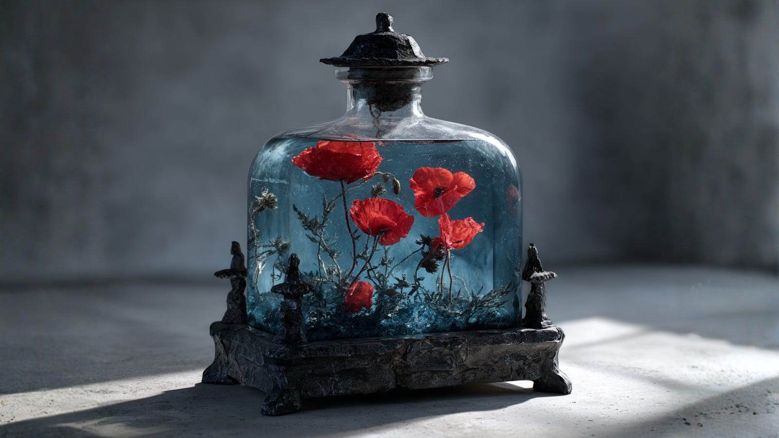 In this Elixir IV, the poppy seeds are the relics of true, generative power. The deep, dark soil of the Earth—like the deep crevices of our collective memory—is the reliquary.